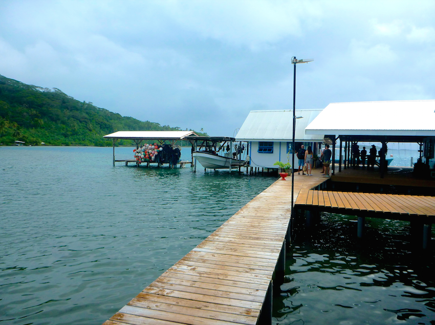 Notre temps dans ce petit paradis est compté. Nous optons pour une excursion organisée autour de l’île de Tahaa. Au programme : visite d’une Vanilleraie, une ferme perlière, quelques jardins de corail, un motu, le repas sur le lagon et une rencontre avec les requins. Malheureusement, le temps n’était pas de la partie et nous avons vite remarqué que nous n’avions pas l’équipement adéquate… Je vous conseille vivement de prendre un poncho ainsi qu’un sac étanche. Il en fallait plus pour entamer notre bonne humeur. Mais pas simple de se mettre à l’eau quand le comité d’accueil est déjà en place… Passée l’appréhension, la magie opère. Allez, équipez vous, je vous présente les boss du lagon !