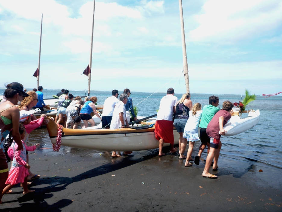 Nous avons répondu à l’invitation de « Moana explorer » afin de participer au baptême de leurs 7 nouvelles pirogues à voile (« Holopuni »).