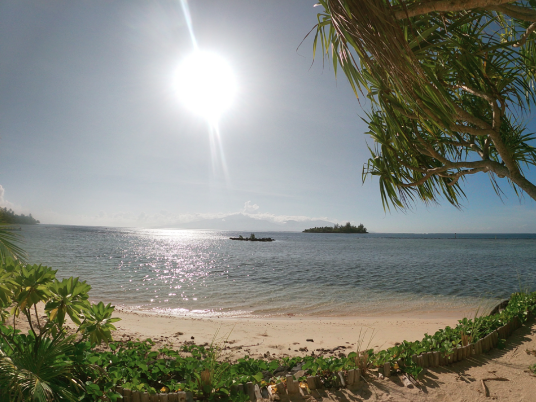 Tahiti en arrière plan, le cadre est exceptionnel et pour ne rien gâcher, nous sommes seuls sur le site.