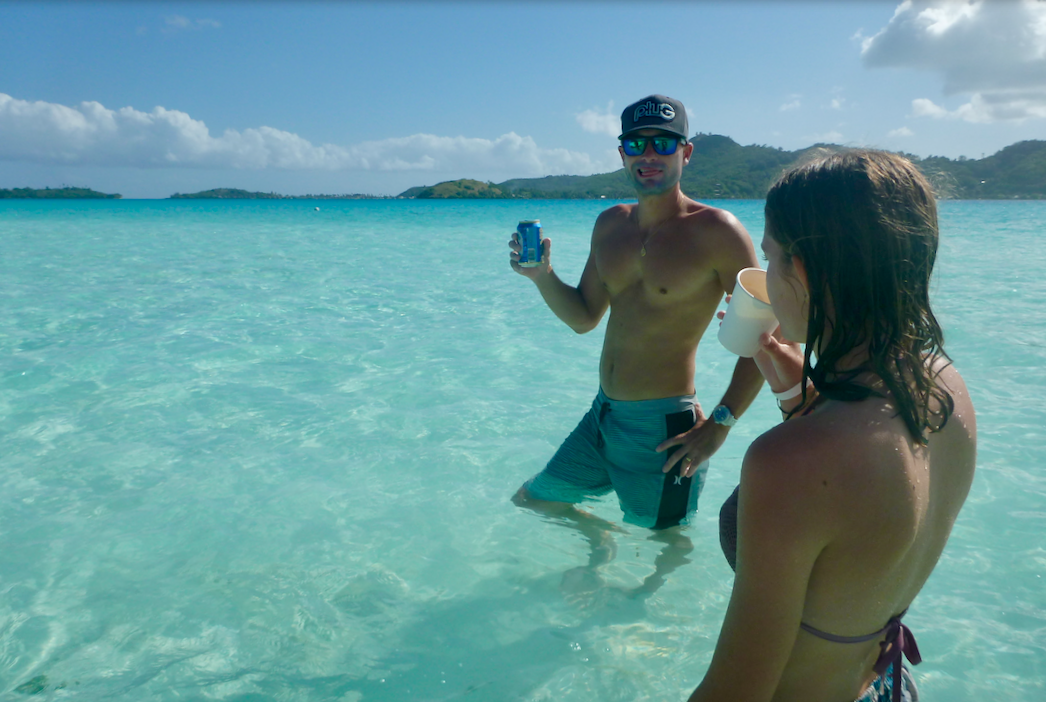 C’est maintenant l’heure de l’apéro ! On s’installe dans le lagon turquoise, les pieds dans un sable fin comme de la farine, vue sur le Mont Otemanu, Ukulele et Hinano à la Main… Le kiffe !