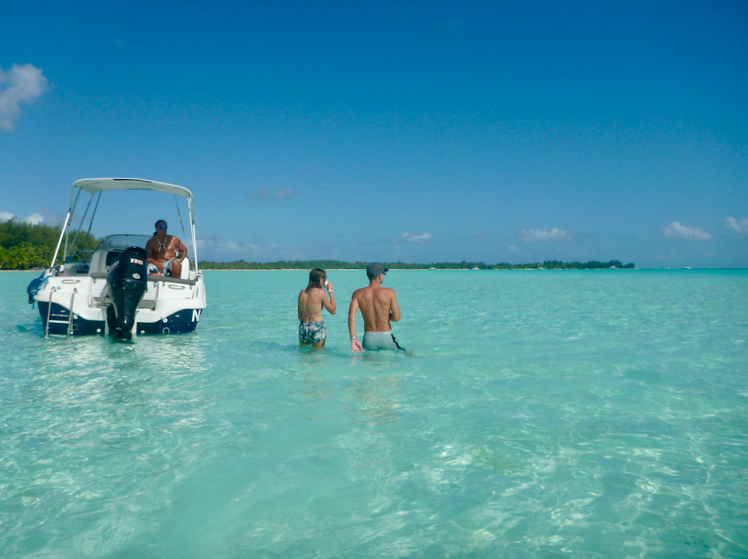 On n’allait quand même pas partir sans découvrir le fameux lagon de Bora Bora. Les touristes viennent du monde entier pour s’y baigner, on aimerait savoir pourquoi ! Cap’tain Maui vient nous récupérer directement au ponton de l’hôtel. Il nous a organisé un tour personnalisé, le but étant d’en voir un maximum en en minimum de temps…
