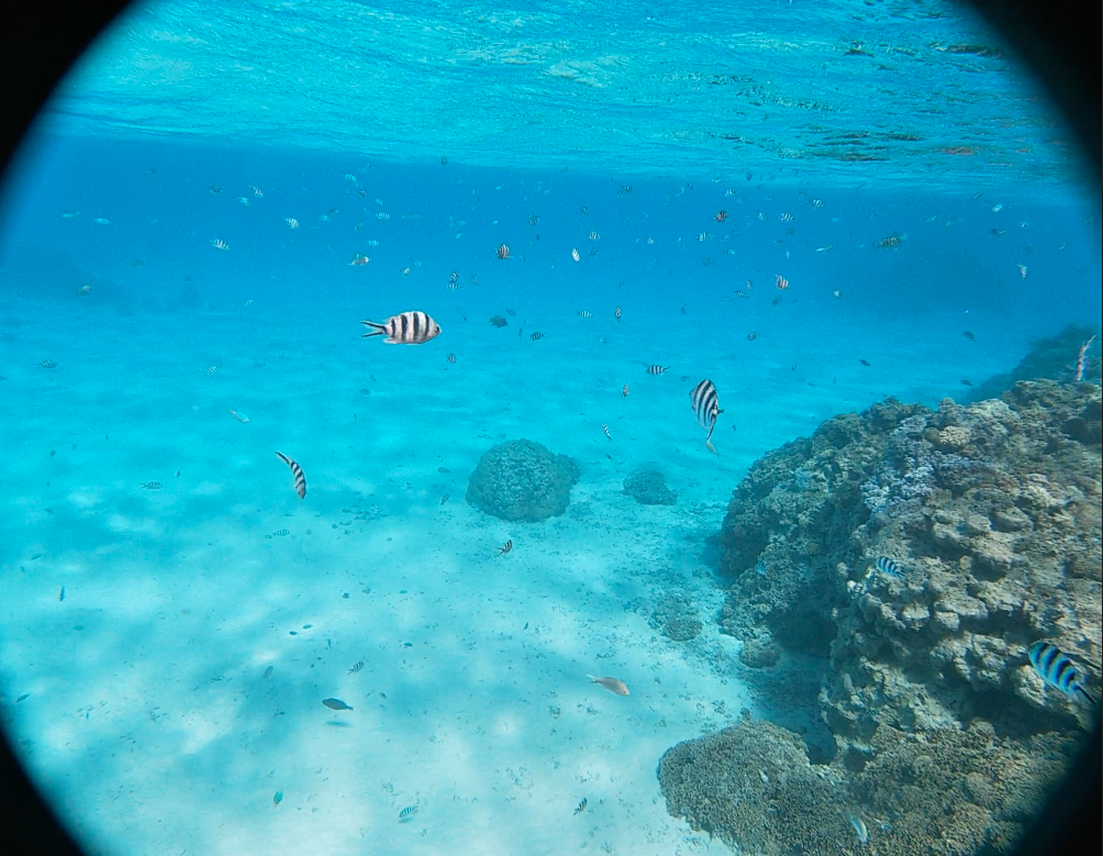 Nous rejoignons le spot appellé « L’aquarium ». Personnellement, je n’ai jamais vu autant de poissons. Nous passons entre des hôtel de plus en plus gros. Bora Bora, est un peu l’île des superlatifs de ce côté là.