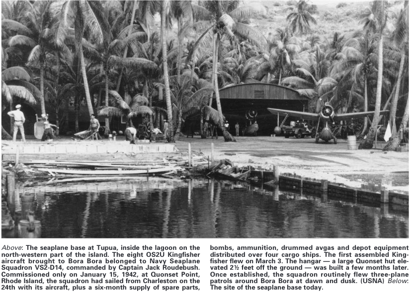 Afin de protéger l’Australie et la Nouvelle Zélande, l’état-major américain doit trouver une île servant de dépôt d’essence, de munition et ayant la possibilité d’encrer leur flotte en toute sécurité. Le choque de l’attaque de leur base sur Hawaii est telle, qu’à peine 2 semaines plus tard, Bora Bora est désignée base de ravitaillement et d’hydravions du Pacifique Sud.