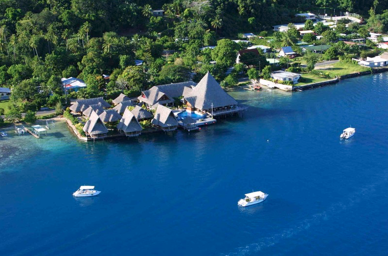 Elle fait partie des île sous le vent, dans l’archipel de la Société. Située à 255 km soit moins d’une heure de vol au Nord Ouest de Tahiti, Bora Bora est une toute petite île de 30 km2 pour moins de 10000 habitants.