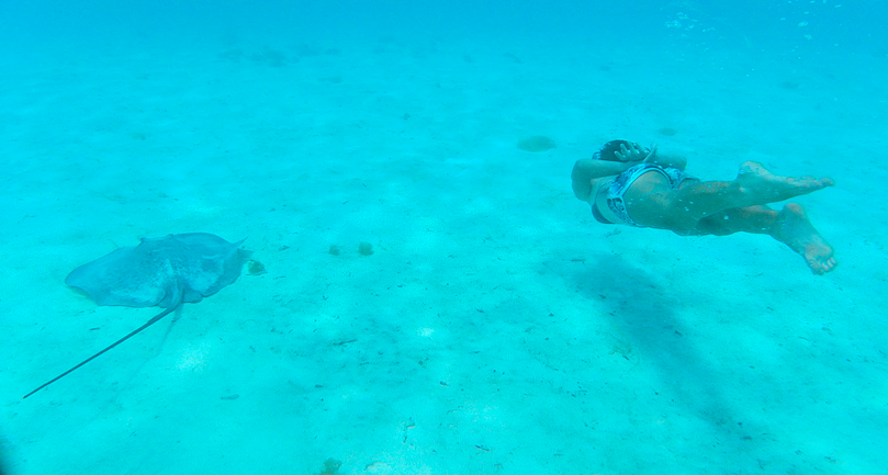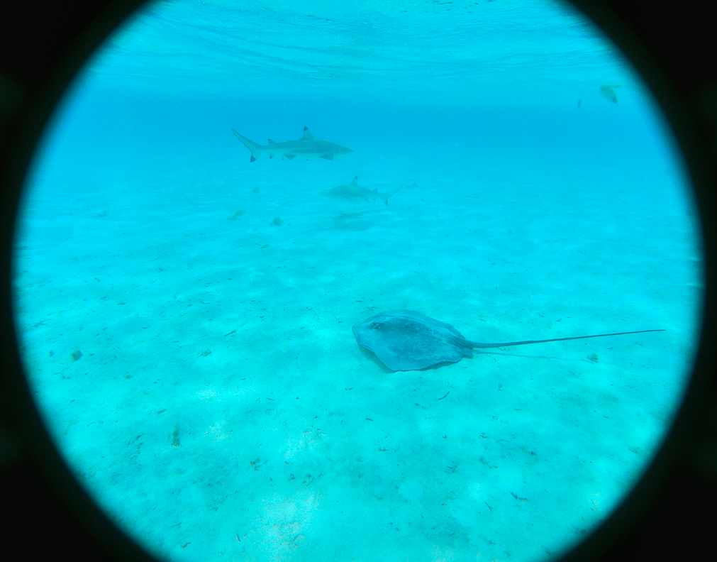 Premier stop, les requins et raies Pastenagues. Il faut avoué qu’il n’y a plus la même magie que pour les premières fois mais les voir évoluer en toute liberté reste hypnotisant. Nous ne faisons pas de « feeding » donc, dès que ces demoiselles se rendent compte de la supercherie, elles passent leur chemin, tout en grâce.