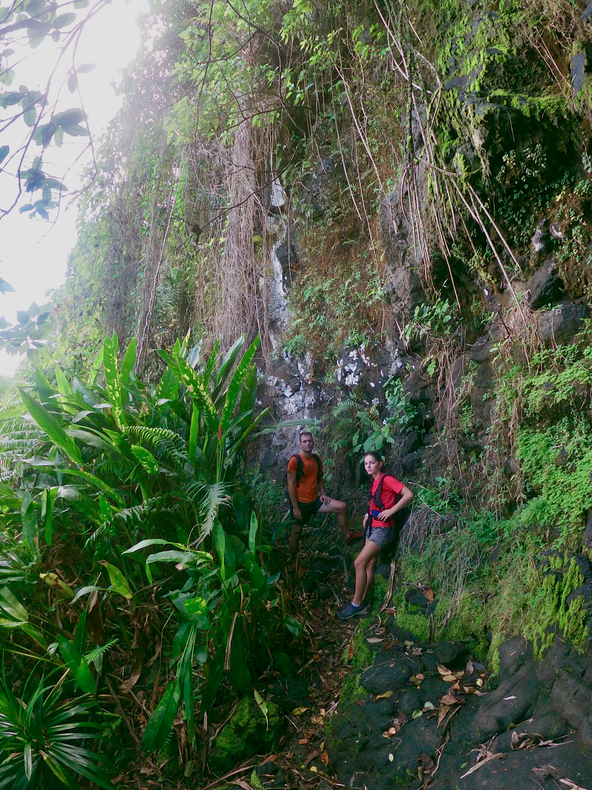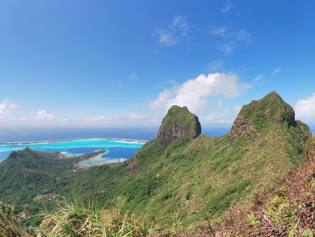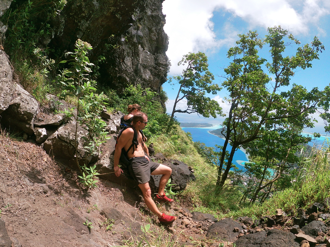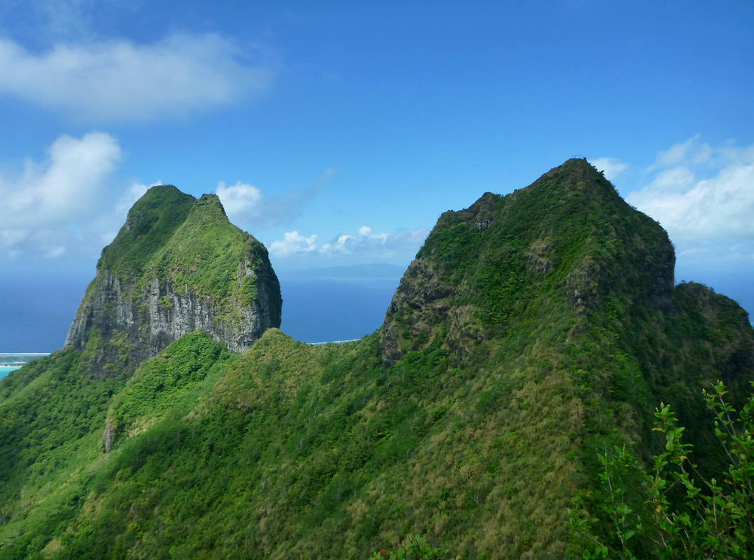 La première journée sera l’occasion de prendre un peu de hauteur. Nous partons à l’assaut du mont Pahia (661m) ou plutôt Pa’ihia qui signifie « qui a été frappé ». La légende nous rapporte que deux guerriers de Tahiti seraient venus voler cette montagne. Hiro, son fils Marama et leur coq étaient sur un motu. Le coq qui a vu les guerriers et s’est mis à chanter pour prévenir du danger. Pour le faire taire, les guerriers le tuèrent mais Marana furieux frappa la montagne pour faire tomber les guerriers. Ils formèrent deux motus à la pointe Sud de l’île. Depuis, une cavité est présente sur le flanc de la montagne.