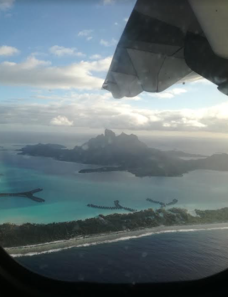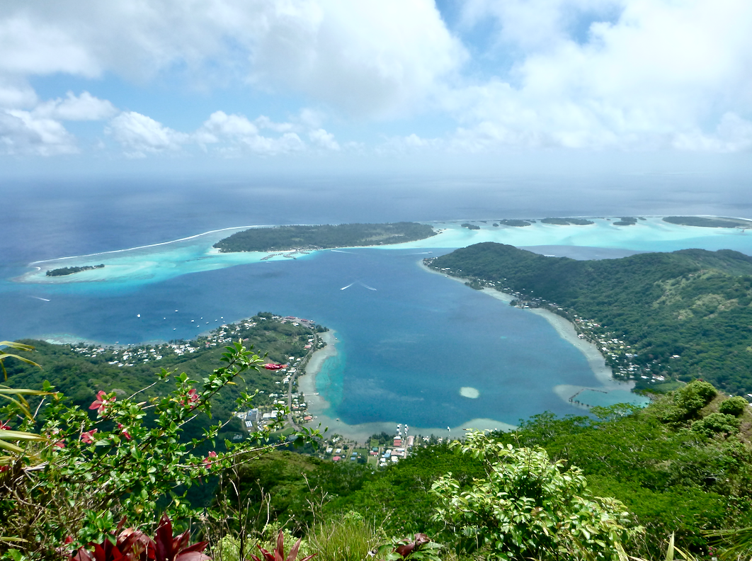 à 20km de bora nous avons le plaisir d’observer Tahaa (entre les 2 sommets), l’île vanille, que nous avions eu le plaisir de découvrir il y a tout juste un an. Nous découvrons également l’atoll de Tupai, en forme de coeur (bon, c’est pas très clair sur la photo mais vous pouvez vérifier sur maps !)