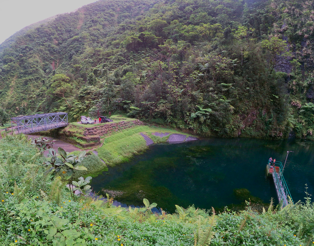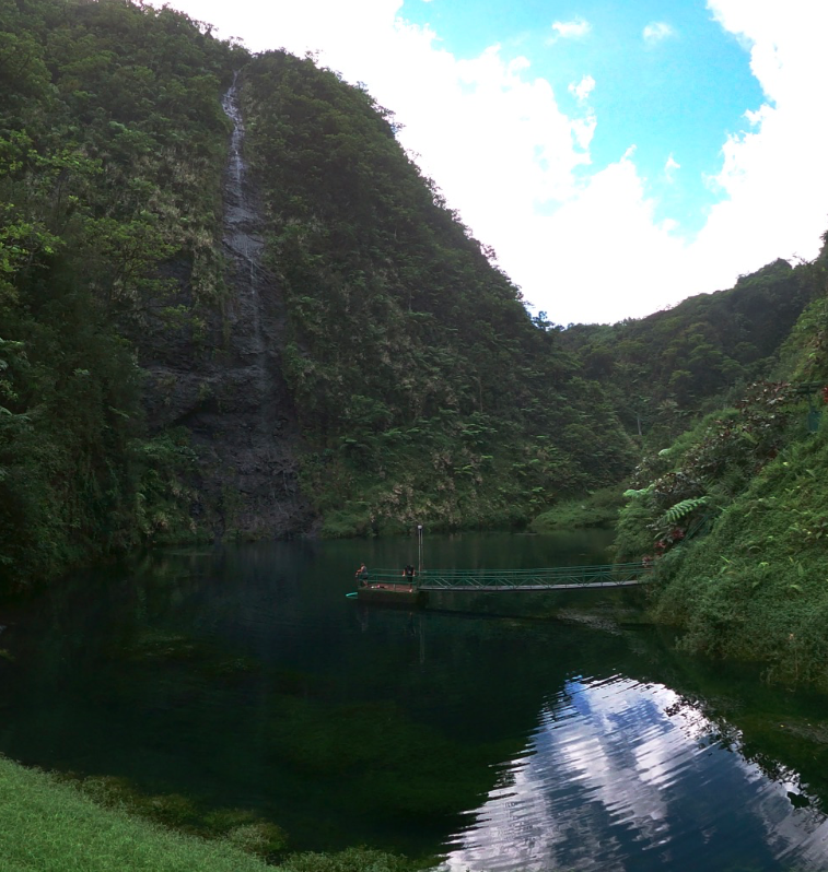 Mais avant d’arriver sur la côte à Mataeia (pk47,5), nous découvrons le « lac bleu ». Les photos ne vous transmettent malheureusement pas cette couleur incroyable. Un petit joyau dans la jungle verte pour clôturer une très belle journée.