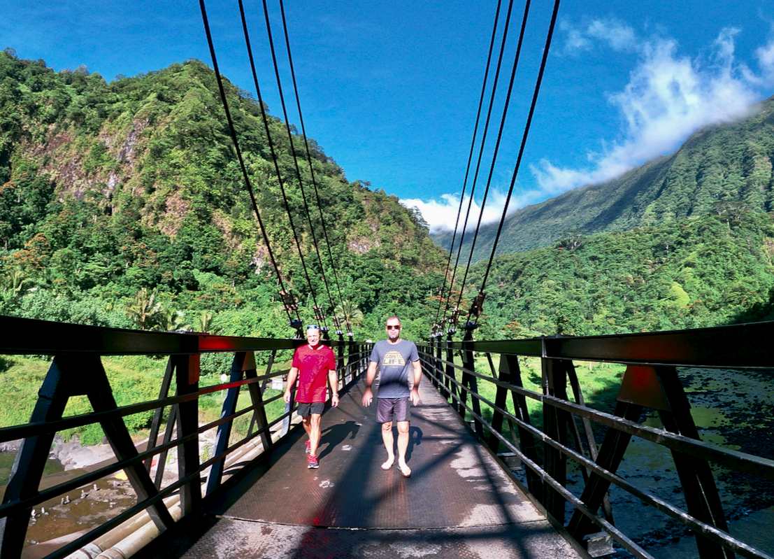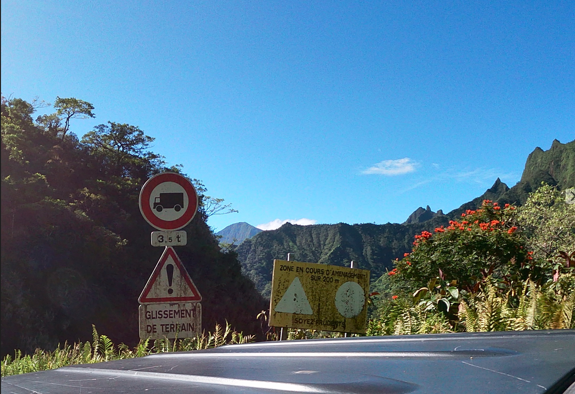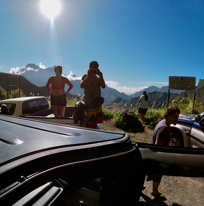 La pose photo est obligatoire ! Les conditions exceptionnelles nous offre une superbe vue sur le mont Arorai. Une face que nous n’avons pas l’habitude d’observer. On se régale. D’ailleurs, on prolonge la pose par une citronnade au Relais 😉