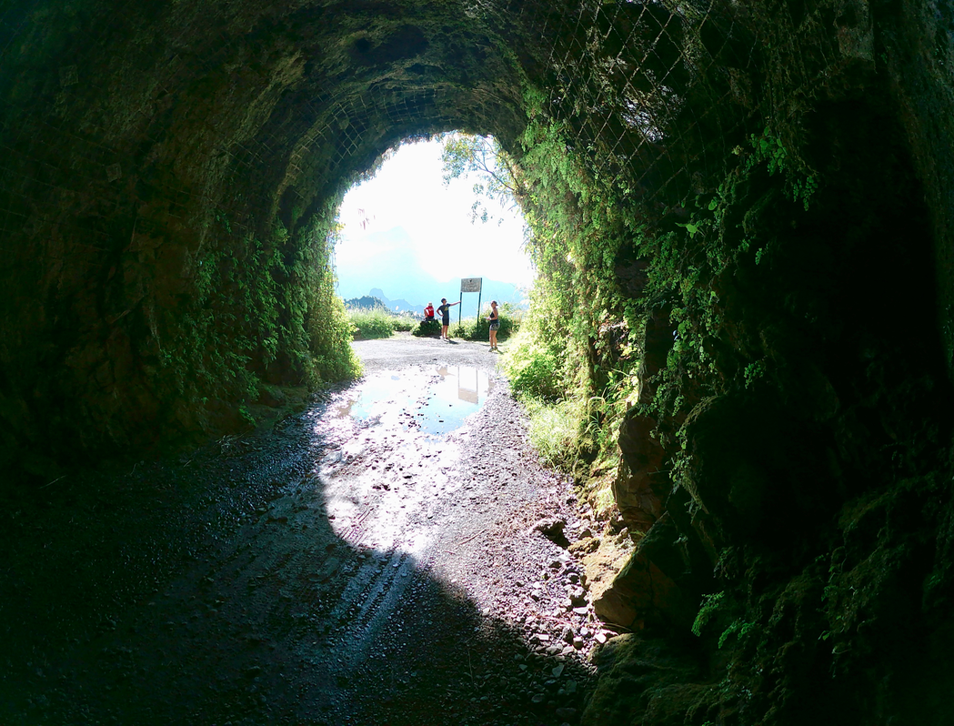Changement radical de végétation à la sortie Ouest du tunnel. Nous sommes désormais à l’ombre et avons perdu quelques degrés. Nous sommes à présent à 800m.