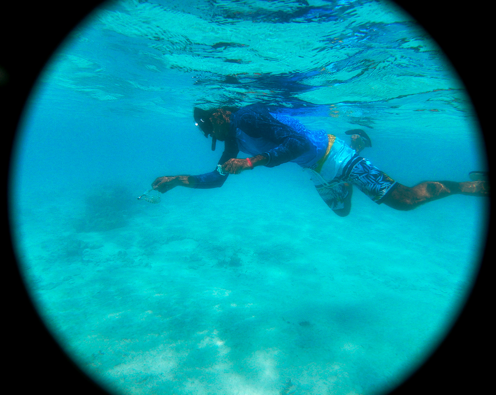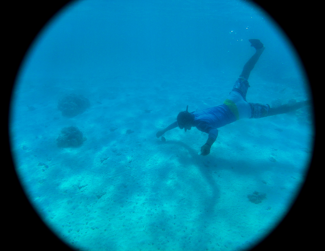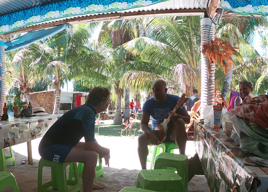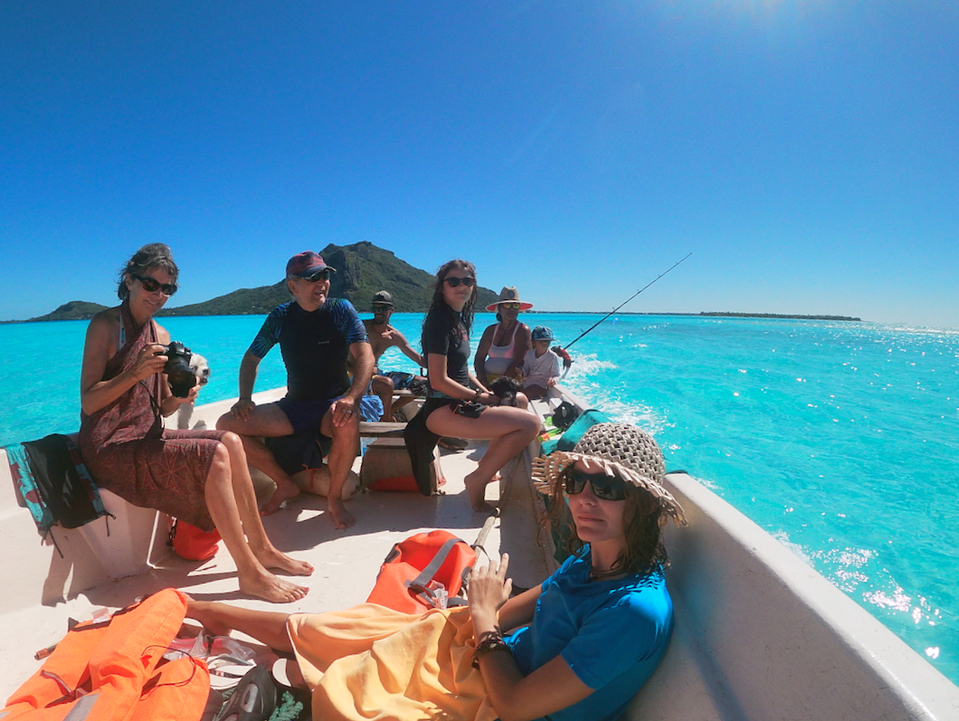 Chaque samedi, un four traditionnel est organisé sur le motu voisin (Tiapaa). C’est l’occasion pour les locaux de se retrouver et pour les touristes, de découvrir ce mode de cuisson typique de la Polynésie. Décision est prise de profiter de cet évènement pour faire une sortie pêche et rencontre avec les Raies Mantha.