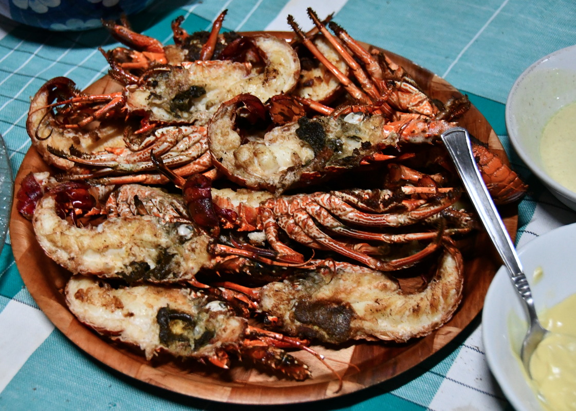 Nous avons donc réservé une robinsonnade mais pas un Koh-Lanta. Alors quand Olivia nous propose des langoustes pour le repas du soir, on ne se fait pas prier ! Surtout que le midi avait été plutôt frugal et pour le coup, assez proche de Koh-Lanta. Elles ne sont pas bien grosses, je pense qu’elles sont à la limite de la taille minimale mais on se régale.