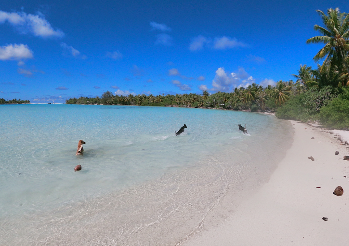 Après ces quelques détails techniques, passons à la visite du Motu Pitiahe. Si la vue de la cabane est magnifique, il faut rester attentif au courant. Ura va à l’eau sans problème, nous par contre… nous n’avons pas joué longtemps et avons fait quelques pas pour trouver un spot plus calme.