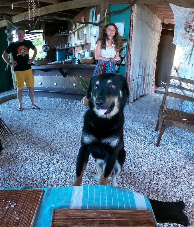 Nous faisons vite la connaissance des gardiens de la cabane. Si Olivia est fan de Bichons, les gardiens sont d’une taille plus imposante. Voici notre préféré, Popoï. Il a bien du mal à rester sérieux, surtout devant des restes de repas…