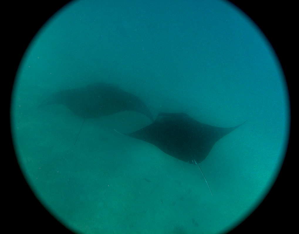 Au p’tit matin et déjà sous un soleil généreux, l’équipe au complet se retrouve dans la barque. Quelques bateaux d’excursion touristique sont déjà sur le site de lavage de Raies. Dérangées, elles ne se montrent pas facilement. Ura et Olivia passent au plan B. Ils connaissent leurs habitudes. Sur le second spot, nous seront seuls avec ces animaux fantastiques. Les Mantha sont impressionnantes ici. Malgré le sable en suspension qui altère la visibilité, on en profite un maximum.