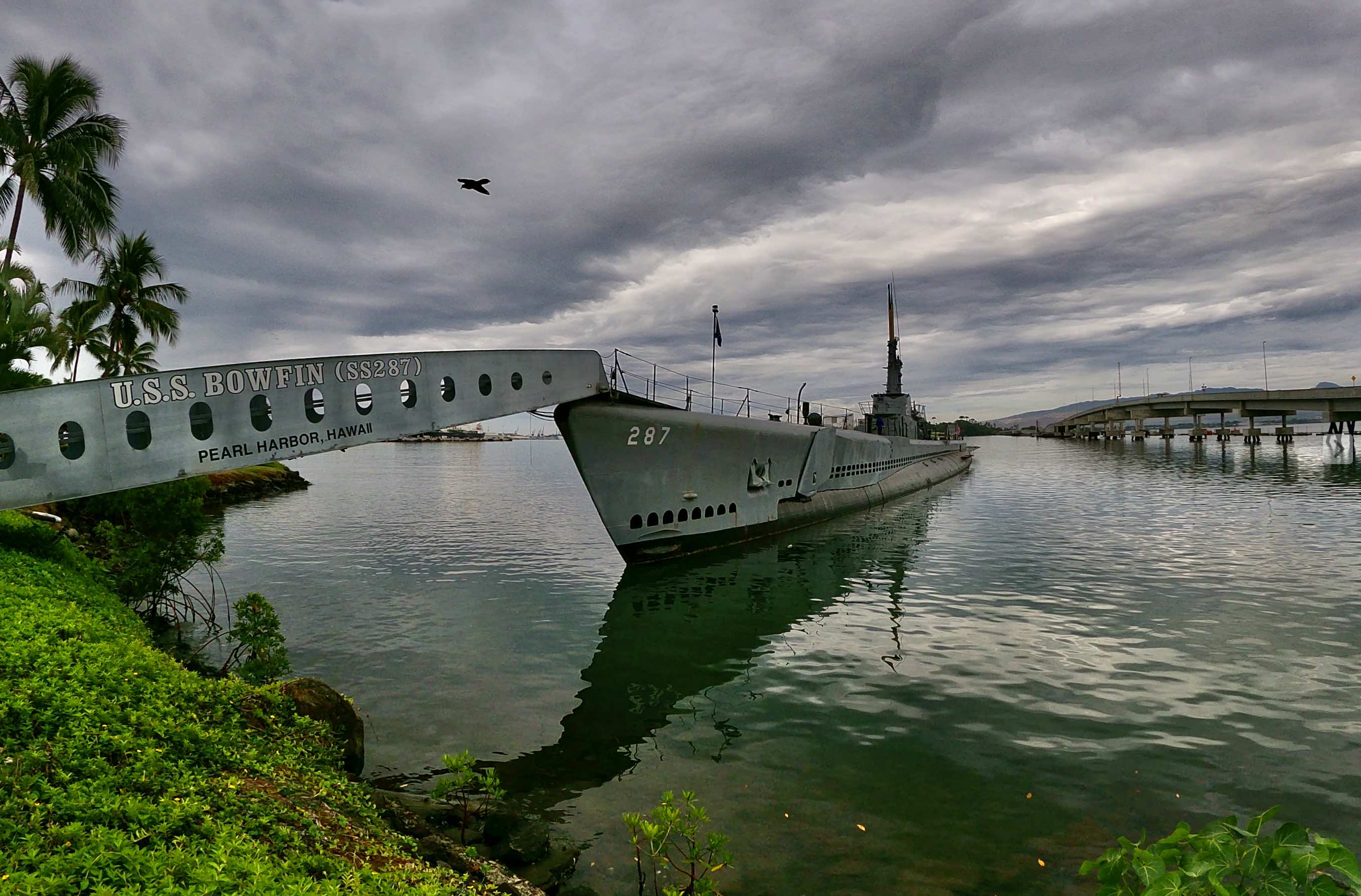 Mis en service le 7/12/1942, l’USS Bowfin coula 15 navires marchands et une frégate puis servi dans la guerre de Corée pour l’ONU, devint navire école et fut remorqué jusqu’à Hawaii en Aout 79 pour devenir un navire musée et déclaré monument historique en 86.